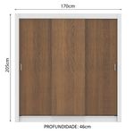 Medidas totais do armário: 205 cm de altura x 170 cm de largura x 46 cm de profundidade.
