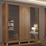 - Três (3) portas de correr sendo uma (1) de madeira e duas (2) com espelhos e puxadores em PVC
