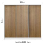 Medidas totais do armário: 218 cm de altura x 231 cm de largura x 55 cm de profundidade.
