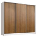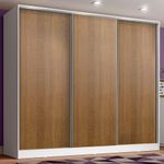 Os tubos cabideiros são em alumínio, muito resistentes e a profundidade do móvel é ideal para qualquer tamanho de cabide. Além disso, as três portas de correr de madeira oferecem um ganho de espaço enorme e não prejudicam a circulação no quarto.