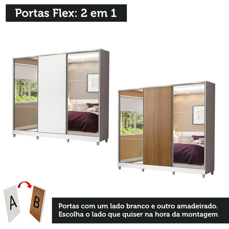 Guarda Roupa Juvenil 100% MDF Madesa Kevin 3 Portas de Correr com Espelhos com Pés - Branco Cor:Branco