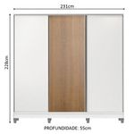 Medidas totais do armário: 228 cm de altura x 231 cm de largura x 55 cm de profundidade.