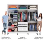 Os tubos cabideiros são em alumínio, muito resistentes e a profundidade do móvel é ideal para qualquer tamanho de cabide. Além disso, as três portas de correr proporcionam um ganho de espaço enorme, sem prejudicar a circulação no quarto.