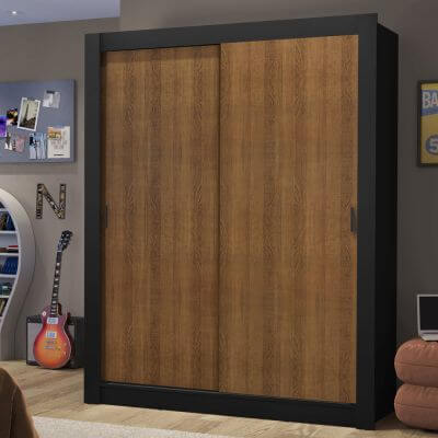 O Guarda-Roupa Dallas da Madesa conta com duas portas de correr de deslizamento suave, trilhos em alumínio, dobradiças metálicas e ferragens de qualidade que proporcionam melhor sustentação ao móvel.