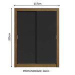 Medidas totais do guarda-roupa: 205 cm de altura x 117 cm de largura x 46 cm de profundidade.