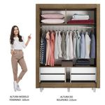 Medidas totais do guarda-roupa: 215 cm de altura x 117 cm de largura x 46 cm de profundidade.