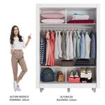 Medidas totais do guarda-roupa: 215 cm de altura x 117 cm de largura x 46 cm de profundidade.