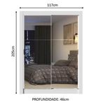 Medidas totais do guarda-roupa: 205 cm de altura x 117 cm de largura x 46 cm de profundidade.