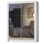 Guarda-Roupa com duas portas de correr de deslizamento suave, trilhos em alumínio, dobradiças metálicas e ferragens de qualidade que proporcionam melhor sustentação ao móvel. Contempla duas prateleiras e quatro nichos, além de um cabideiro de metal resistente e de tamanho diferenciado, 105 cm.