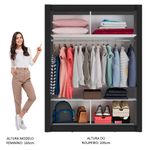 Medidas totais do guarda-roupa: 205 cm de altura x 117 cm de largura x 46 cm de profundidade.
