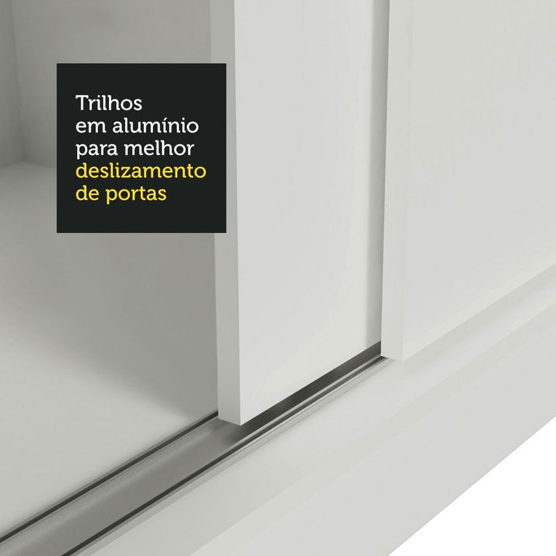 Possui espaços internos bem distribuídos e duas gavetas de fácil manuseio, sendo que uma possui tranca com chave. As portas de correr de madeira permitem fácil acesso interno, além de não comprometer a circulação. O puxador em alumínio é muito resistente e com formato levemente inclinado facilitando a abertura.