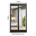 Medidas totais do guarda-roupa: 218 cm de altura x 109 cm de largura x 54 cm de profundidade.
