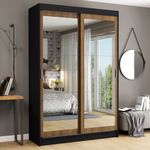 Os materiais utilizados são de alta qualidade, com duas portas de correr com deslizamento suave e puxadores em alumínio, dobradiças metálicas e trilho superior e inferior em alumínio. Ambas as portas possuem espelhos, que além de trazerem beleza, também transmitem a sensação de um ambiente mais amplo.