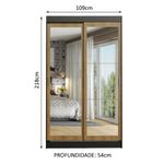 Medidas totais do guarda-roupa: 218 cm de altura x 109 cm de largura x 54 cm de profundidade.