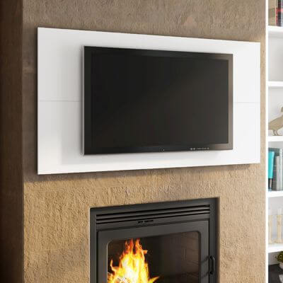 A estrutura conta com duas colunas traseiras de 15 mm, que mantém o painel ligeiramente afastado da parede, permitindo a passagem dos cabos atrás do painel e com abertura “passa fios” para transpassá-los para a TV.