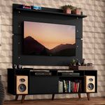 O painel comporta TV de até 65 polegadas e conta com abertura para passar os fios. Contempla também uma prateleira na parte superior, perfeita para objetos decorativos. Por ser separado do rack, pode ser fixado na altura desejada.