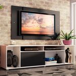 O painel tem design que mistura padrões verticais e horizontais. Comporta TV de até 58 polegadas e possui uma abertura central que facilita na passagem dos fios. Por ser separado do rack, pode ser fixado na altura desejada, conforme sua preferência ou necessidade.