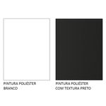 O acabamento do rack combina os tons branco e preto. O painel possui pintura preta. O processo é feito em Poliéster Protetor com 7 camadas, detalhe que confere mais durabilidade e qualidade aos produtos. Além disso, é ecológico, isento de vapores prejudiciais à atmosfera.