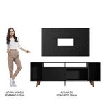 O acabamento combina é todo preto e os pés do rack são em amadeirado Rustic. O processo é feito em Poliéster Protetor com 7 camadas, detalhe que confere mais durabilidade e qualidade aos produtos. Além disso, é ecológico, isento de vapores prejudiciais à atmosfera.