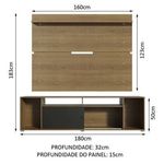 O painel comporta TV de até 65 polegadas e conta com abertura para passar os fios. Contempla também uma prateleira na parte superior, perfeita para objetos decorativos. Por ser separado do rack, pode ser fixado na altura desejada.
