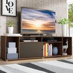 Possui um tamanho ótimo e comporta TV de até 65 polegadas. Conta com uma porta de correr que permite fechar o lado esquerdo ou direito da abertura central. Além disso, são vários nichos de tamanhos diferentes. Assim, cabe tudo de maneira organizada, dos aparelhos eletrônicos até objetos decorativos, livros e revistas.